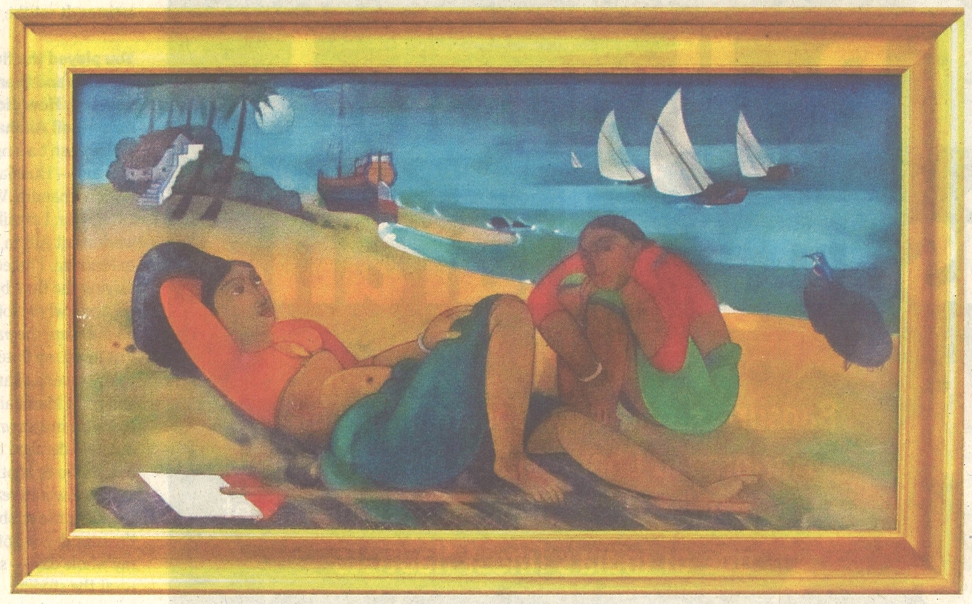 It is a beach in Vasai, a northern outpost of Mumbai in the early ‘80s. The moon has barely risen above the palm fronds that rise above a house in a fishing village. Some fishing boats have set sail in the far distance, while a larger boat is docked on the dunes yonder. Closer to the eye, two women are perched on the sands, not a care in the world. But memory is a chimera too, so don’t bank on it – for if you look closer, one women is lying on the beach in a tropical languor, wistfully looking at the celestial dome above; the other, her sidekick perhaps, is listening to her mentor’s take on the world, her face darkened with a maudlin aura. Their husbands are out at sea, as they are on most days. But when the sea can turn treacherous, one can never tell. And if the purling of the waves in his canvas reveals little of that anxiety, he has captured rather accurately the longing these women feel for their husbands to return. It makes for a hauntingly beautiful work, doubly melancholic for two reasons: the artist was rusticated to Vasai after a financially bad spell in the mid-seventies; and the Vasai in the painting here reflects an idyll that was not defiled by India’s urban juggernaut.
